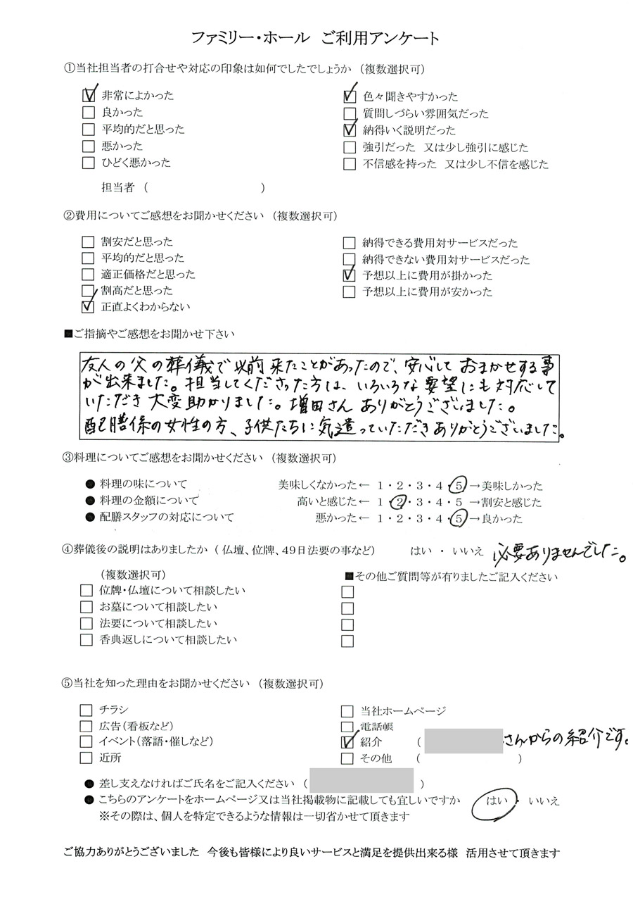 友人の父の葬儀で以前来たことがあったので、安心してお任せすることができました。