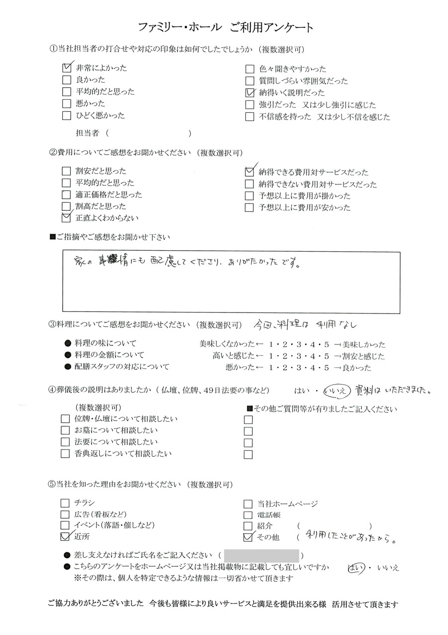 【お客様の声】故人の希望をリーズナブルに叶えてくれました。