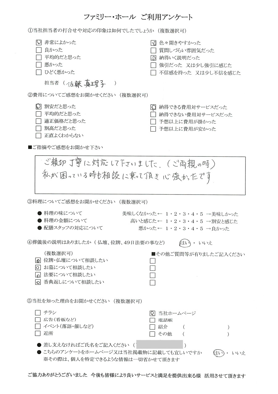 【お客様の声】すばらしい対応をして下さり無事葬儀を行うことができました。