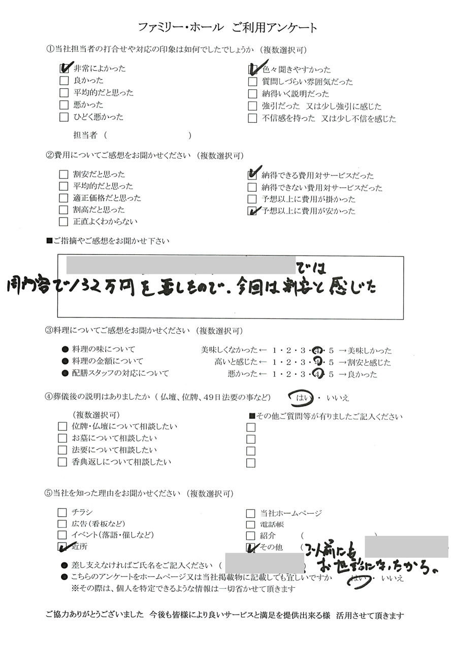 【お客様の声】ファミリーホールさんでやって頂いて良かったです。