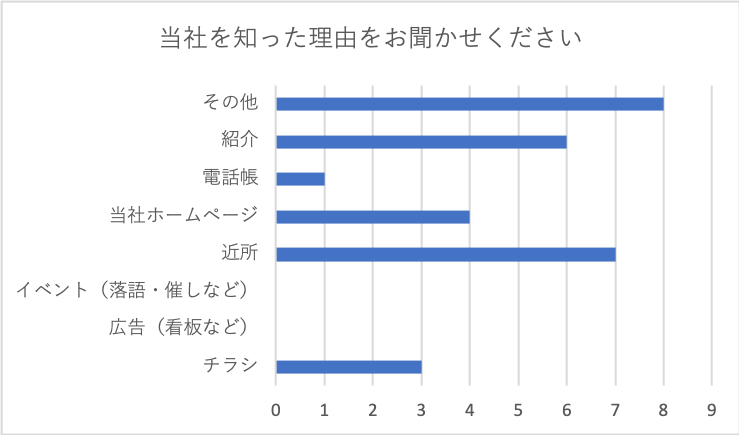 お客様アンケートより、当社を知った理由を集計いたしました。