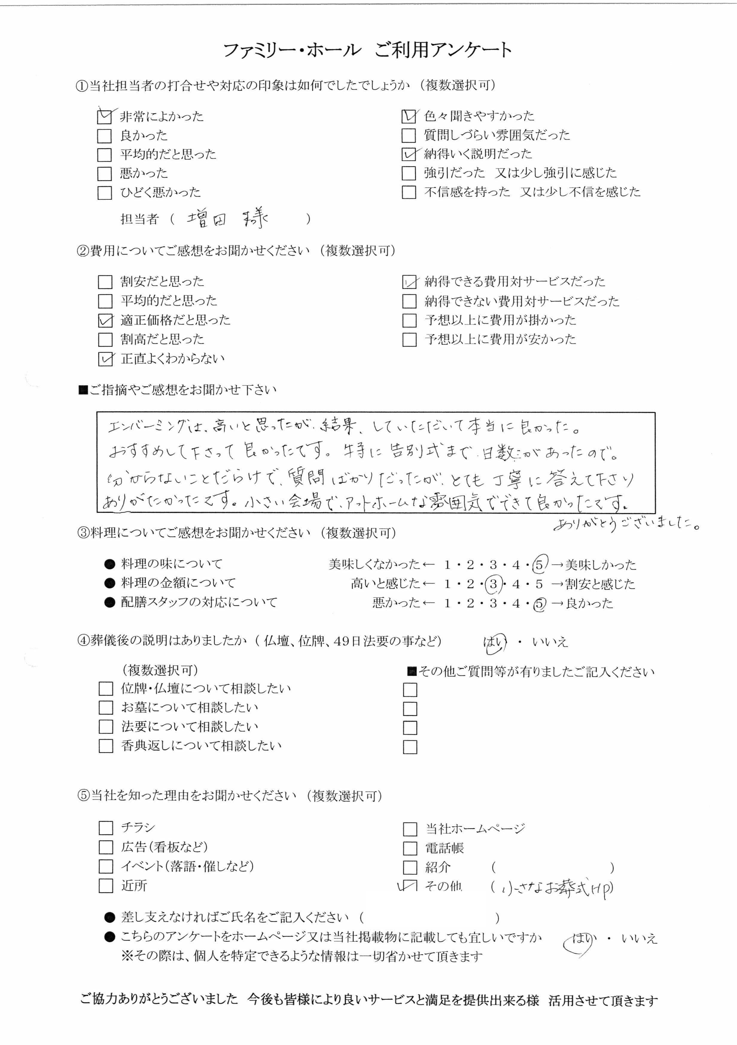 エンバーミングは高いと思ったが結果していただいて本当に良かった。