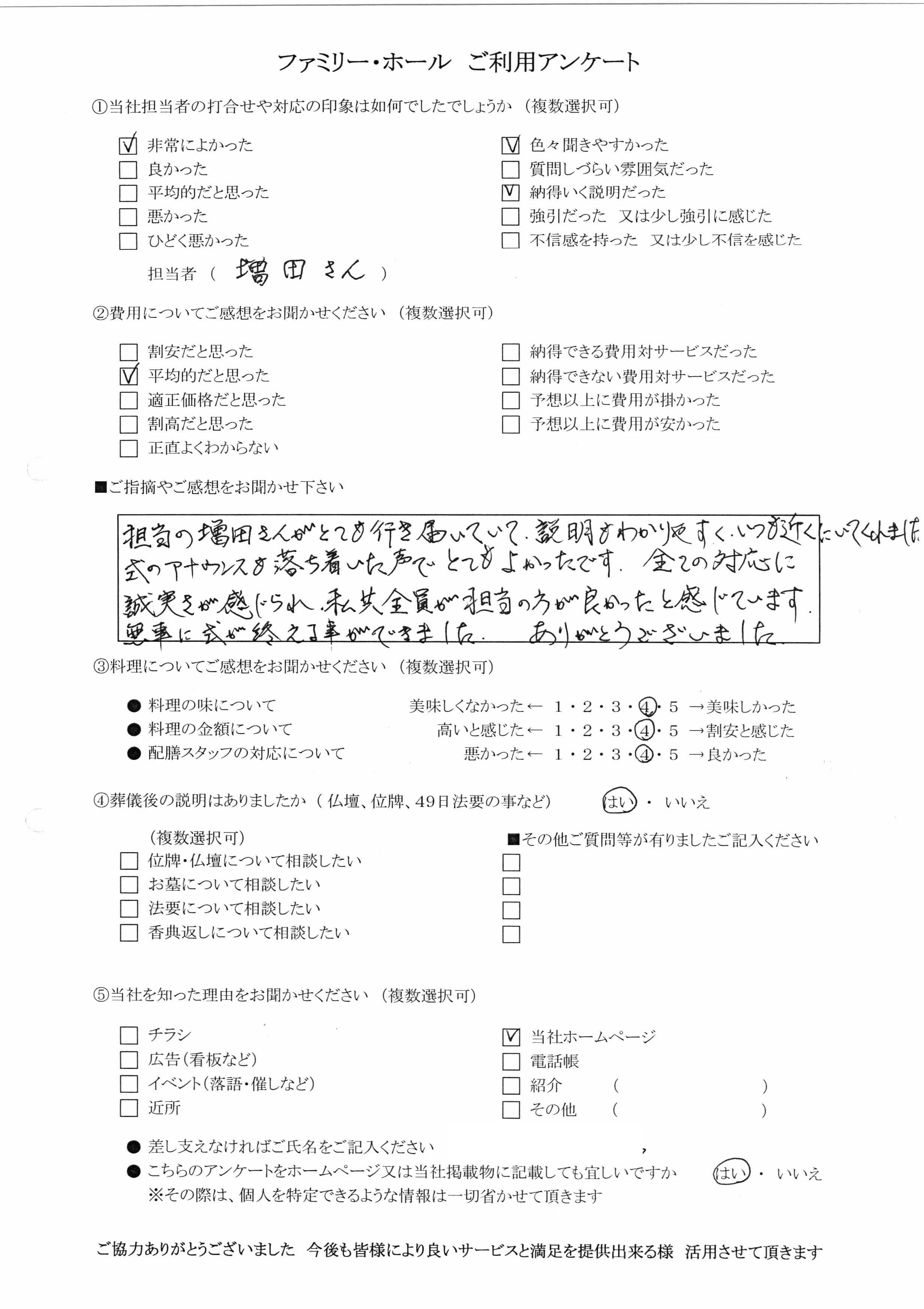 全ての対応に誠実さが感じられ、私共全員が担当の方が良かったと感じています。