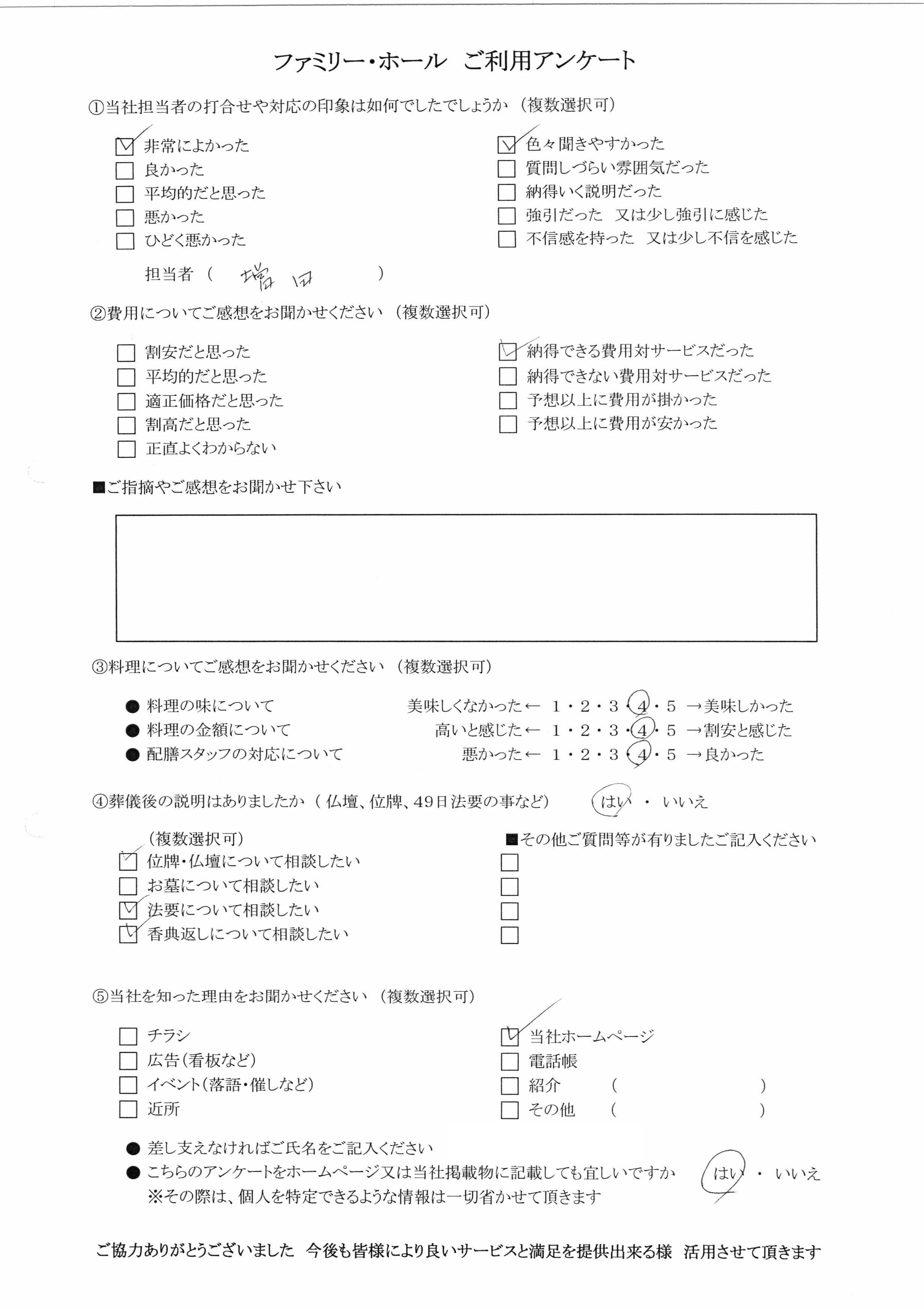 【お客様の声】良い間で喪主をリードしてくださいました。