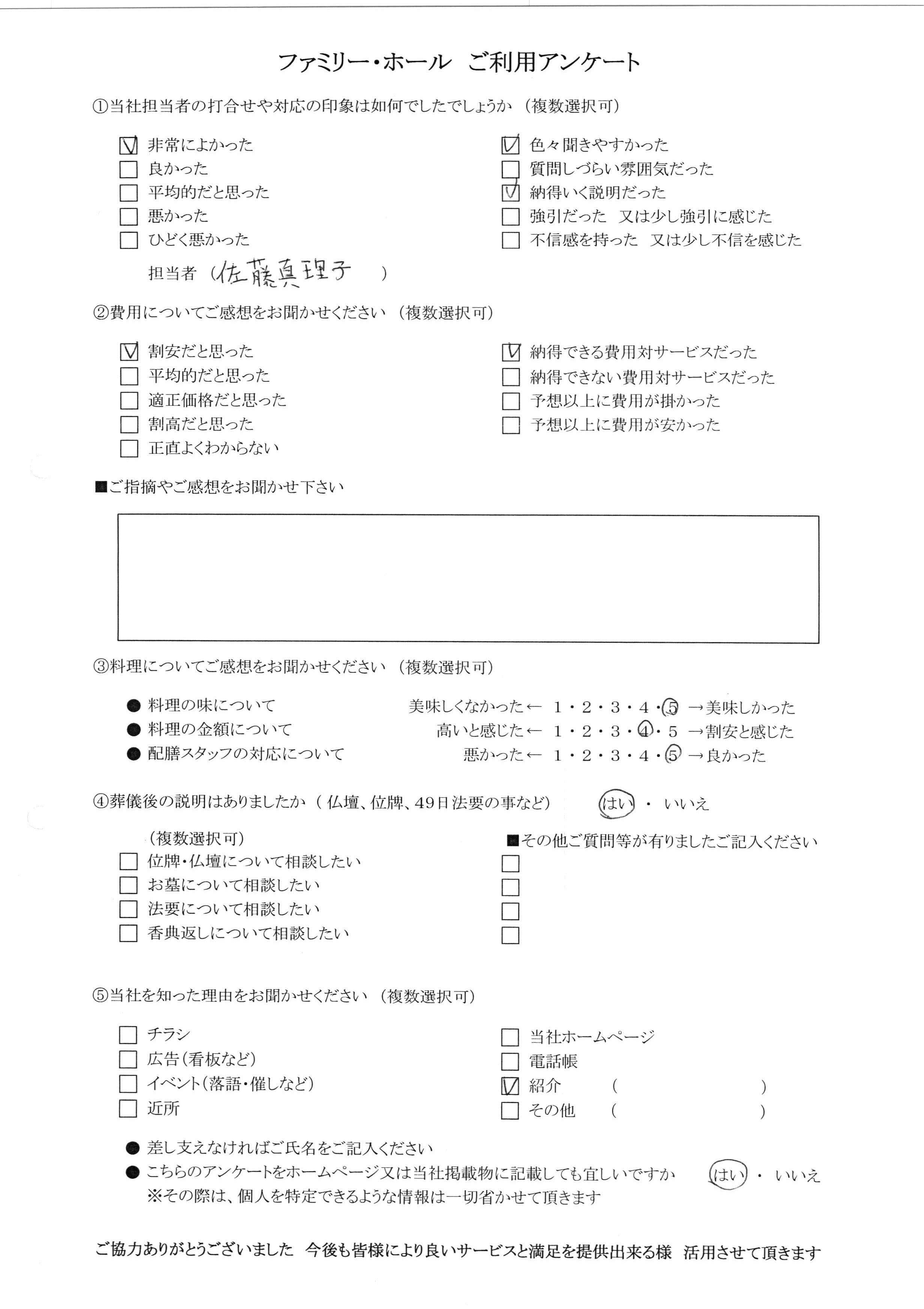 【お客様の声】良い間で喪主をリードしてくださいました。