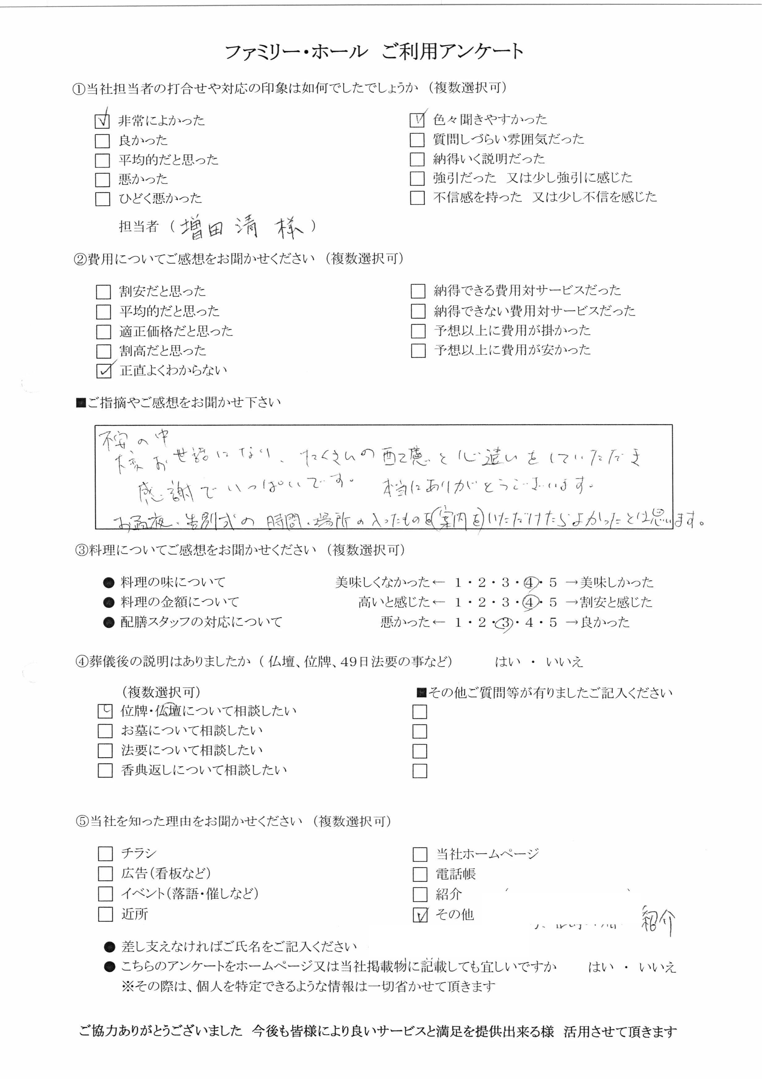 【お客様の声】葬儀の際に一緒に涙してくださったこと忘れません。