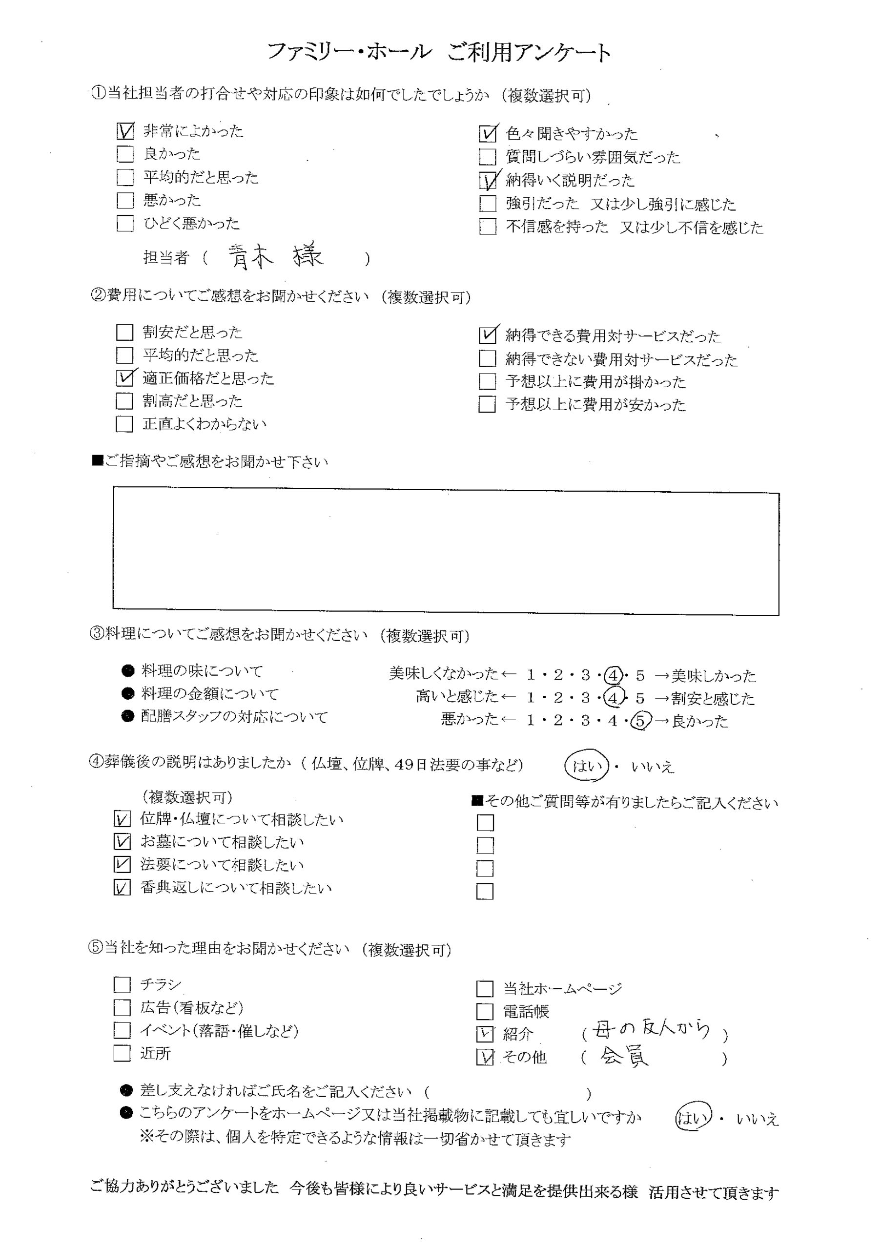 【お客様の声】丁寧な説明で、安心して葬儀ができました。