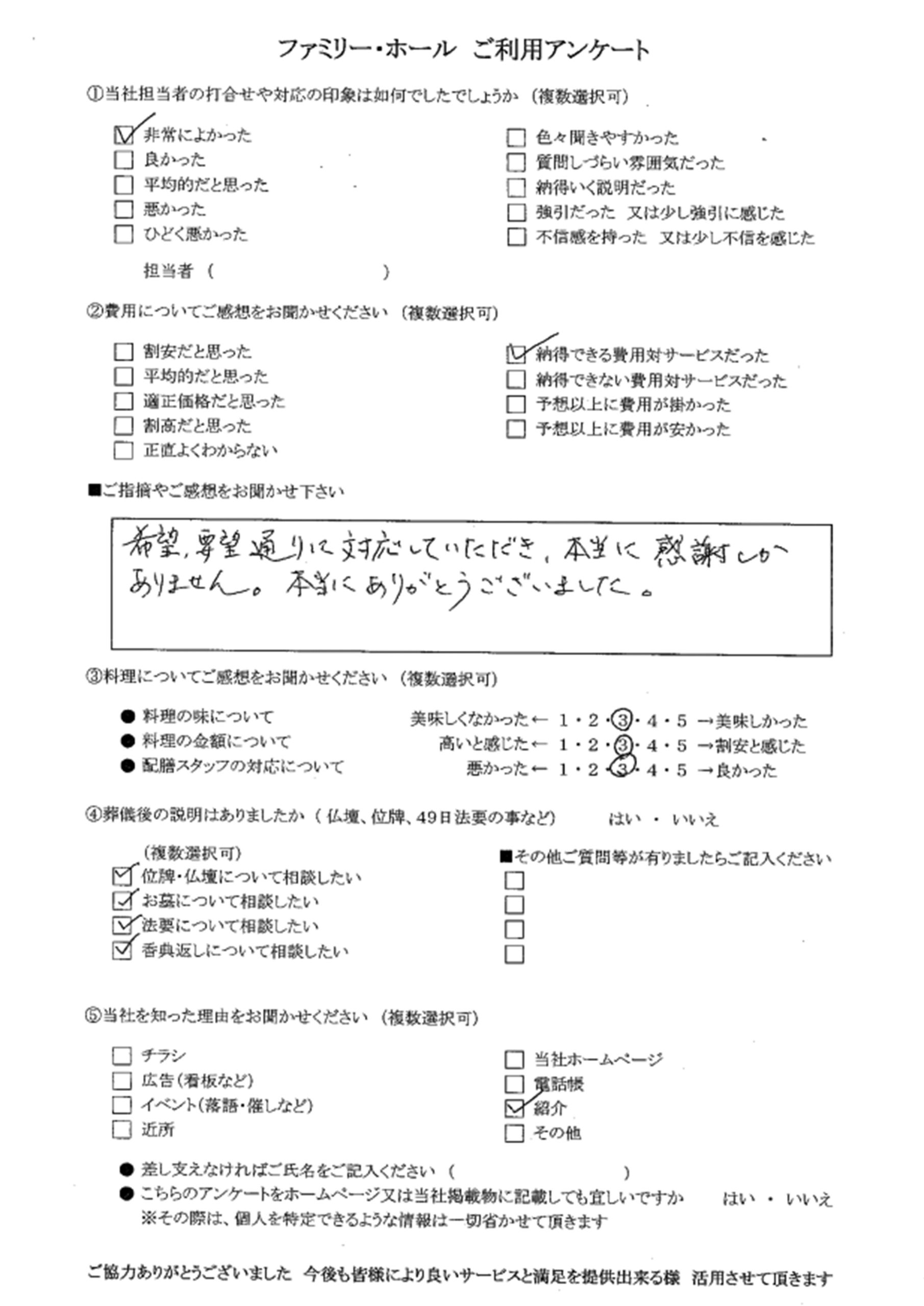 【お客様の声】火葬前日までお部屋に安置されいつでも面会できた。