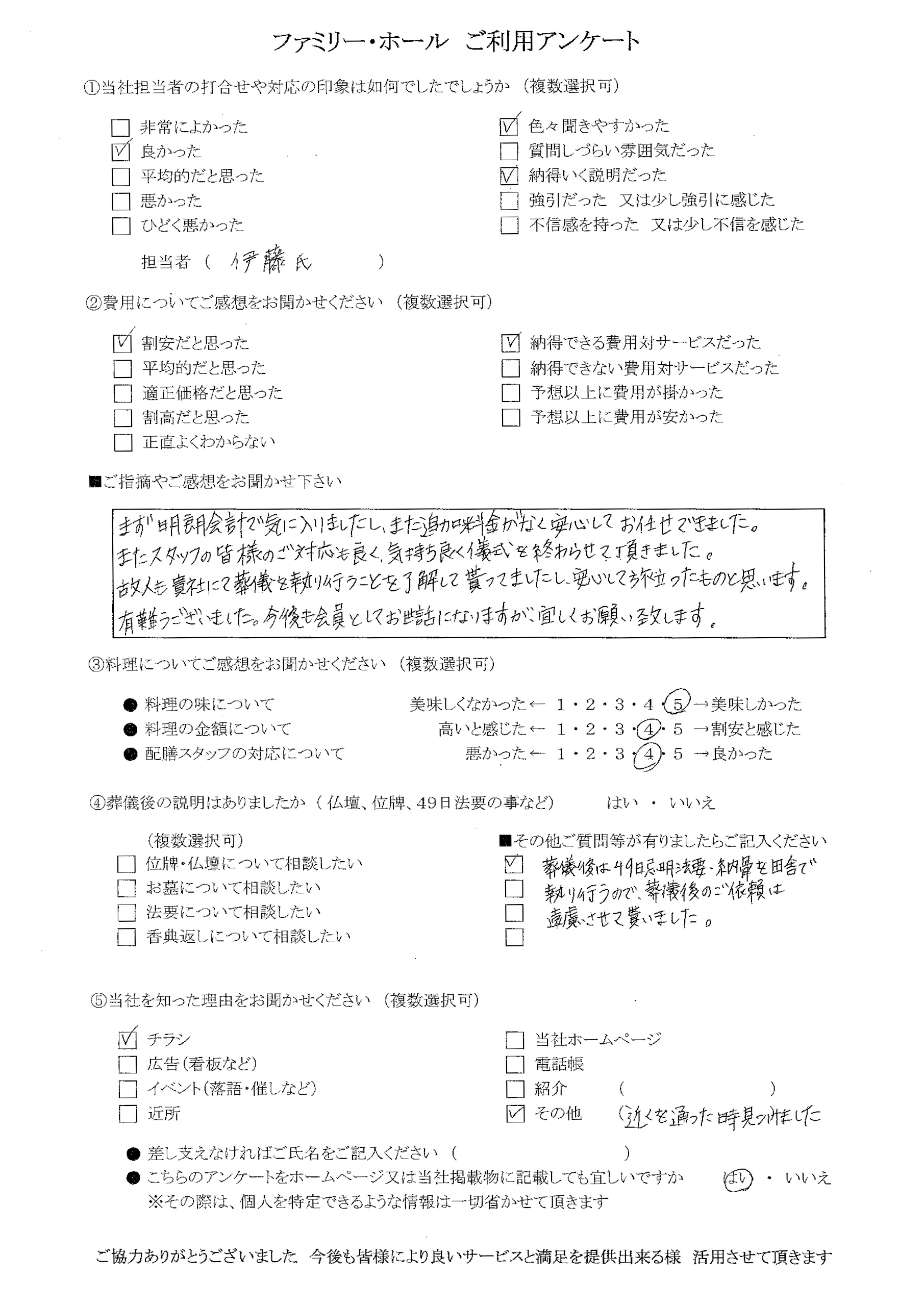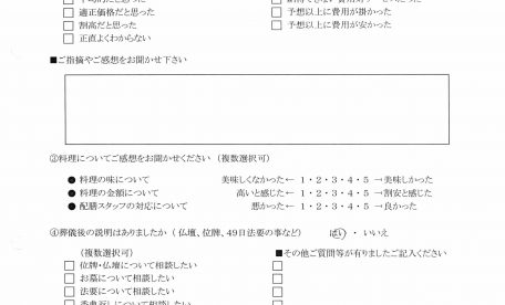 【お客様の声】貴重なアンケートをいただきました