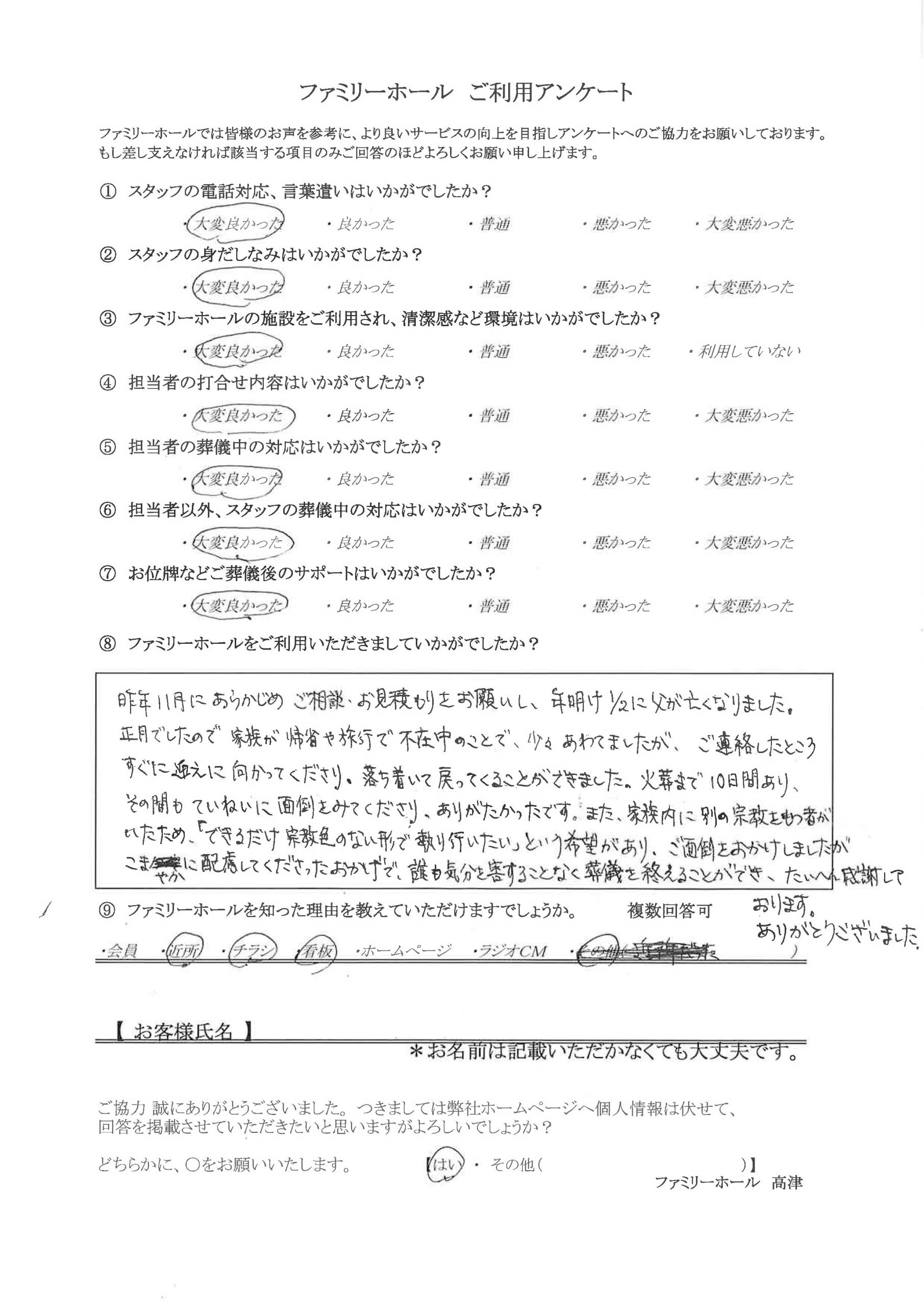 【お客様の声】丁寧に面倒みてくださり、配慮しいただき葬儀を終えることができました。