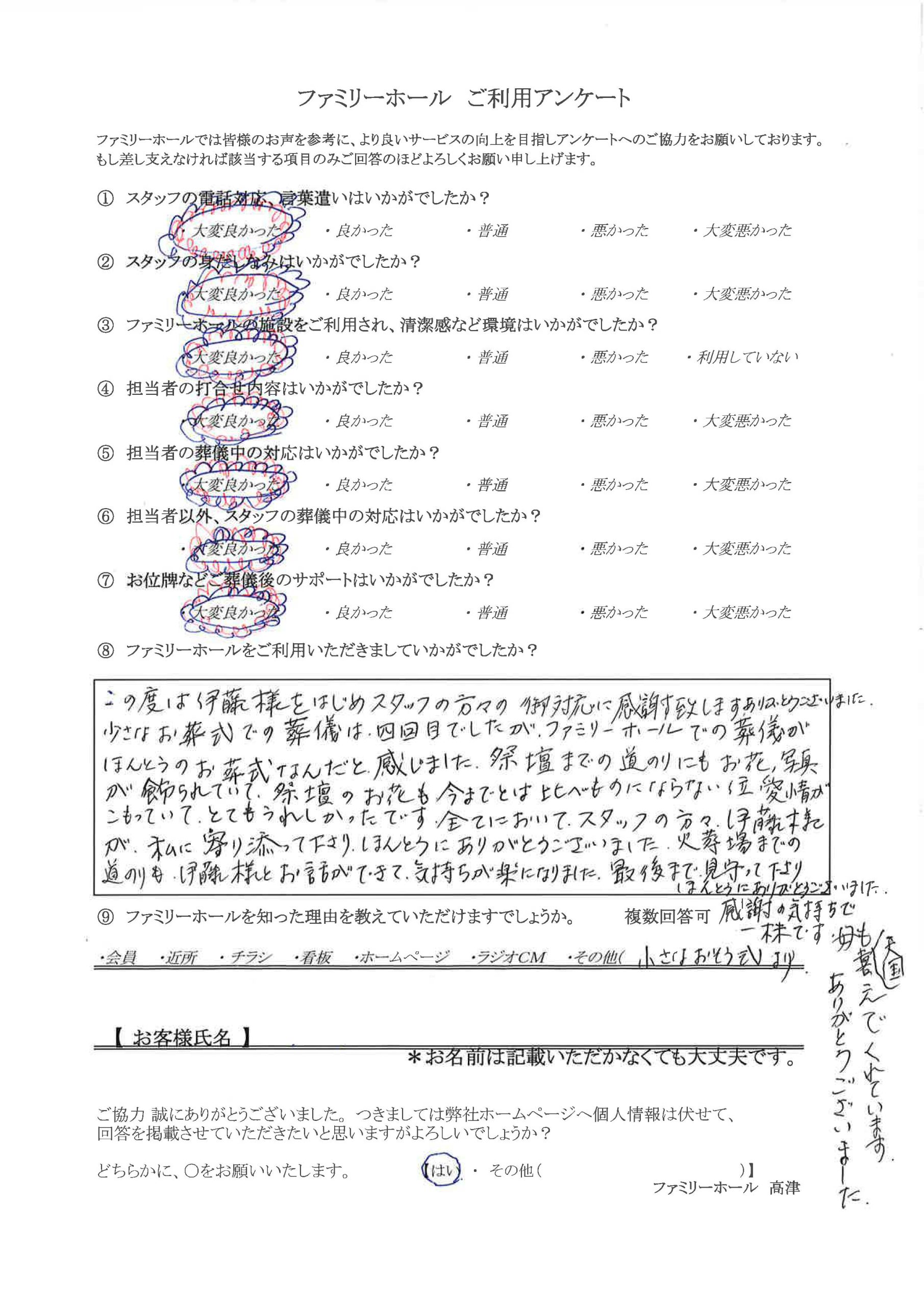 【お客様の声】急な面会や式の要望など親切に対応して下さいました。
