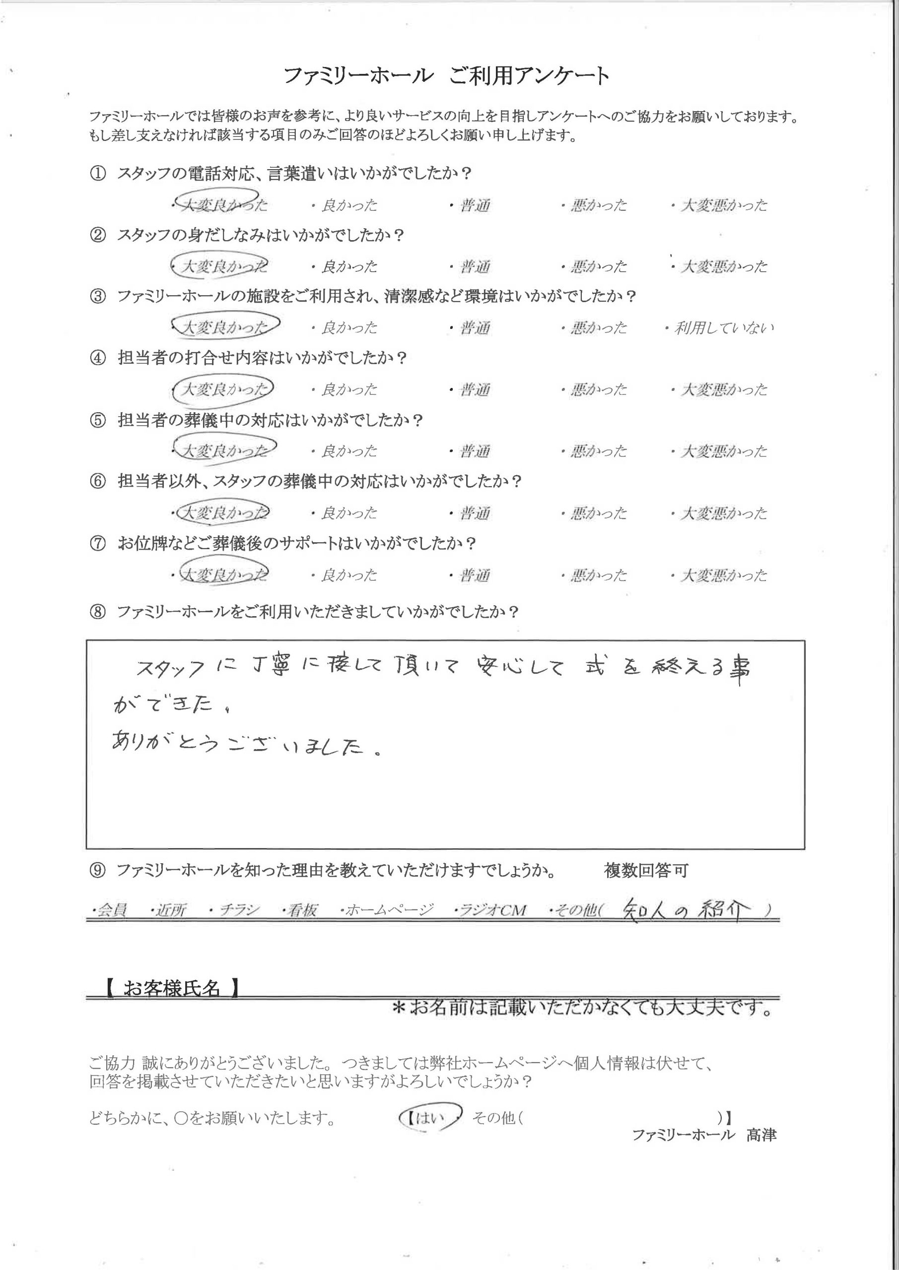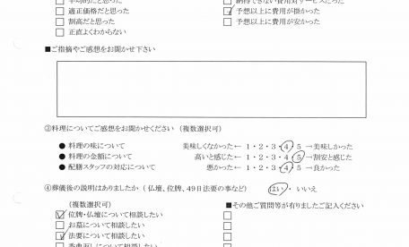 【お客様の声】丁寧に接していただき、安心して式を終えることができました。