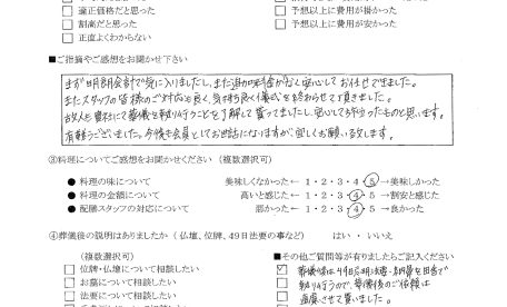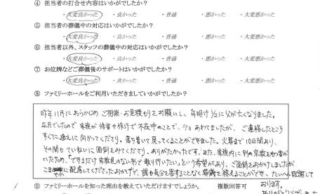 【お客様の声】最初から最後まで心配りをしてくださって安心しました。