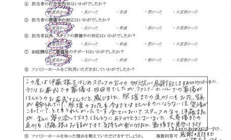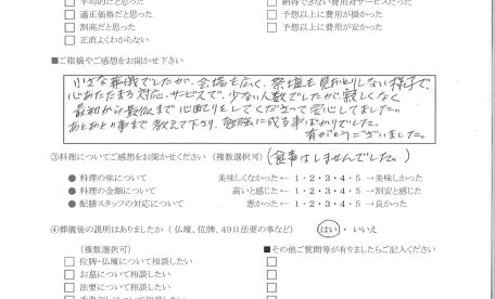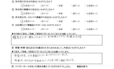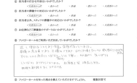 【お客様の声】丁寧に面倒みてくださり、配慮しいただき葬儀を終えることができました。