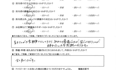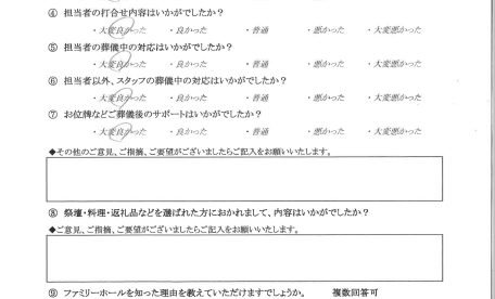 【お客様の声】初めての葬儀でしたが、安心して行うことが出来ました。