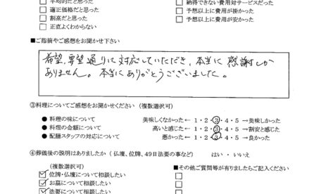 【お客様の声】最初から最後まで心配りをしてくださって安心しました。