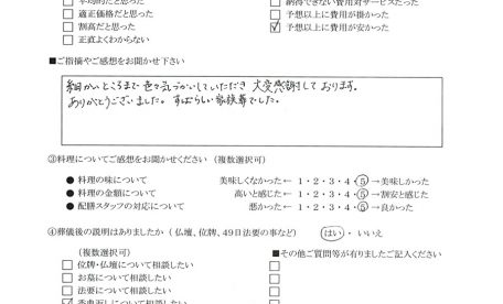 【お客様の声】故人も私ども家族もとても感謝しております。